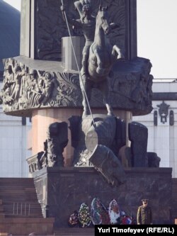 Лошади, символизирующие времена года, скачут по направлению к Кремлю. Композиция в Александровском саду