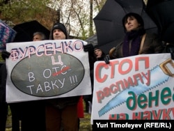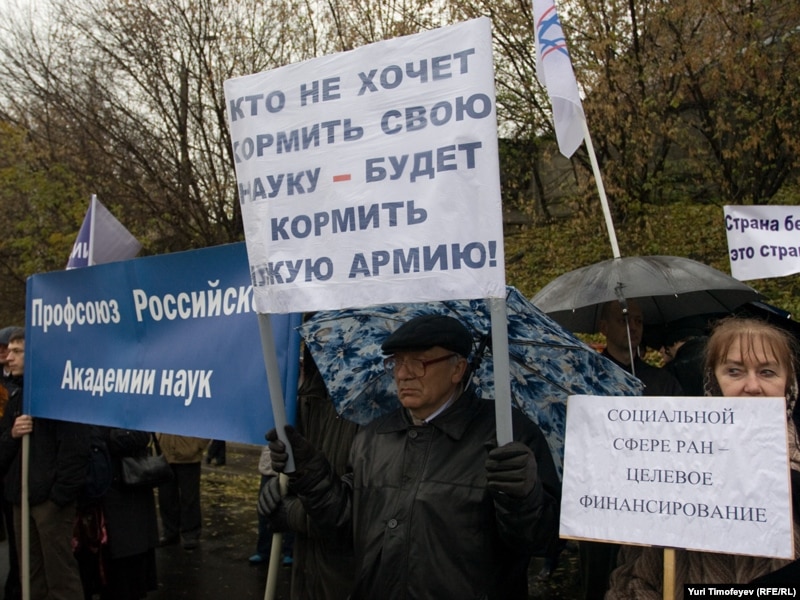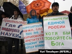 Проливной дождь не помешал сотрудникам Российской академии наук из двух десятков регионов собраться в Москве на митинг с требованием увеличить финансирование науки. Правда, акцию им разрешили провести в месте глухом, практически безлюдном – на Нижней набережной Тараса Шевченко.