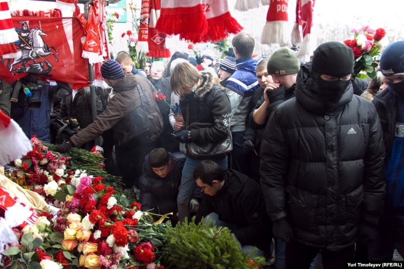Корреспондент Радио Свобода работал на акции памяти Егора Свиридова, убитого 6 декабря в массовой драке спартаковского болельщика.