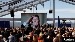 Александр Генис: Надо сказать, что образ Рейгана нашел себе место в отечественном фольклоре, который в те годы особенно чутко реагировал на все нюансы советско-американских отношений. В Москве, как я заметил совсем недавно, до сих пор вспоминают “доброго дедушку Рейгана”, скрывая под иронией уважение и даже благодарность. В таком – ёрническом – стиле написана единственная известная мне ода Рейгану, которая принадлежит перу замечательного поэта Александра Сопровского, к несчастью, трагически погибшему совсем молодым. (В декабре 1990-го его сбил автомобиль, поэту было всего 37 лет).