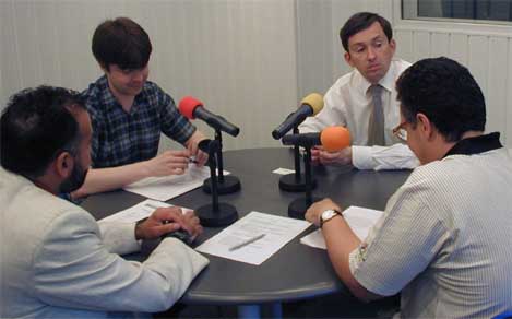 Вопросы задают Роланд Фрицше - второе немецкое телевидение ZDF и Николай Вардуль - заведующий отделом экономической политики издательского дома "Коммерсант".