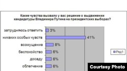 «Владимир Путин и его третий срок» - так называется публикация на сайте Аналитического центра Юрия Левады. Массовые опросы по этому поводу были проведены с 30 сентября по 3 октября по репрезентативной всероссийской выборке городского и сельского населения среди 1600 человек в 130 населенных пунктах 45-ти регионов страны. Статистическая погрешность данных не превышает трех целых четырех десятых процента. Как выяснилось, более трети респондентов полагают, что доверие к Владимиру Путину возникло из-за надежды на скорое решение им проблем страны. Чуть меньшее число опрошенных высказали предположение, что население не видит, на кого бы еще оно могло положиться. 23% россиян поддерживают мнение, что, будучи президентом, Путин доказал свое умение достойно справляться с решением государственных вопросов. В то же время больше половины граждан (52%) говорят о том, что устали ждать от нынешнего премьера положительных перемен в жизни страны. Но, несмотря на это, 42% опрошенных готовы на президентских выборах (если бы они проходили в ближайшее воскресенье) отдать свой голос именно Владимиру Путину, когда им предлагается список из десятка российских политиков. Такое же количество людей, отвечая на вопрос, что происходит, говорят, что это - возвращение Медведевым поста, который был передан ему на 4 года. Лишь 4% полагают, что это отречение Медведева от власти, а по мнению 24% граждан, происходит сговор между двумя политиками за спиной народа. Впрочем, еще 24% уверены, что это – нормальная политическая процедура, и не следует поднимать вокруг этого шум.