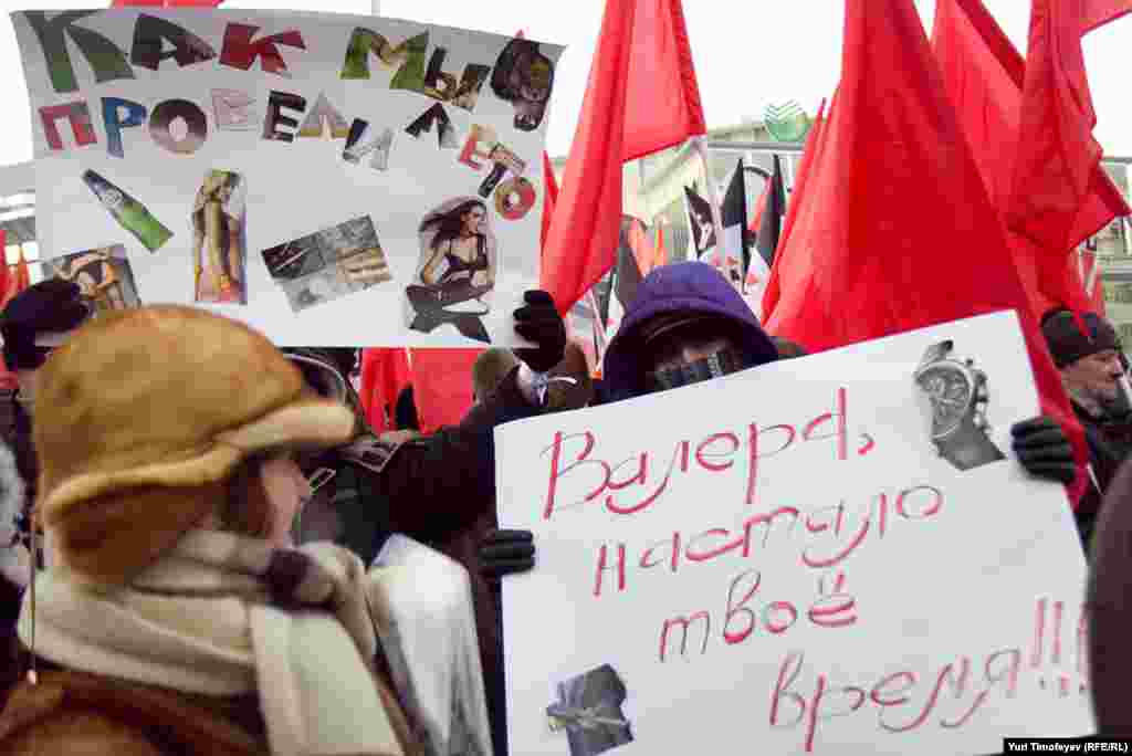Russia -- Protesters gather with balloons and placards during a demonstration for fair elections in central Moscow, 04Feb2012