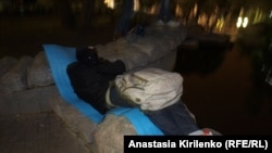 10:00 Утро в лагере на Чистых прудах мирное: сочувствующие приносят людям еду и кофе, те угощают полицейских. К протестующим приехали представители коммунальных служб, чтобы вымыть памятник Абаю Кунанбаеву.