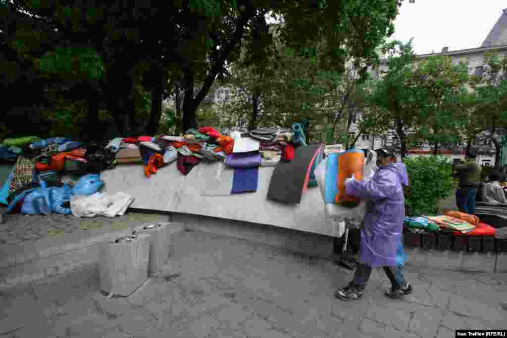 Днем 14 мая появилась информация о возможном разгоне лагеря "ОккупайАбай". Но пока его обитателей лишь попросили убрать вещи с газонов.