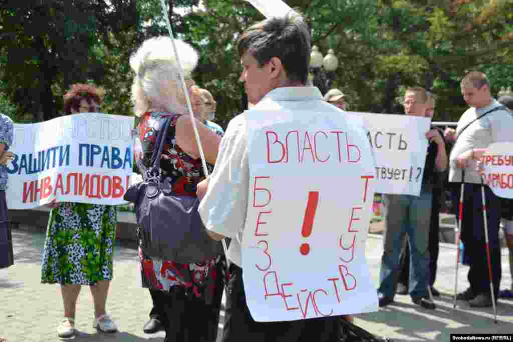 В Москве 5 июля прошел пикет сотрудников call-центра, инвалидов по зрению. Они требуют выплаты задолженности по зарплатам. Центр прекратил работу 2 года назад. До сих пор работодатель не выплатил сотрудникам-инвалидам , многие из которых так и не смогли найти новое место работы, деньги. Фото Маргариты Васильевой