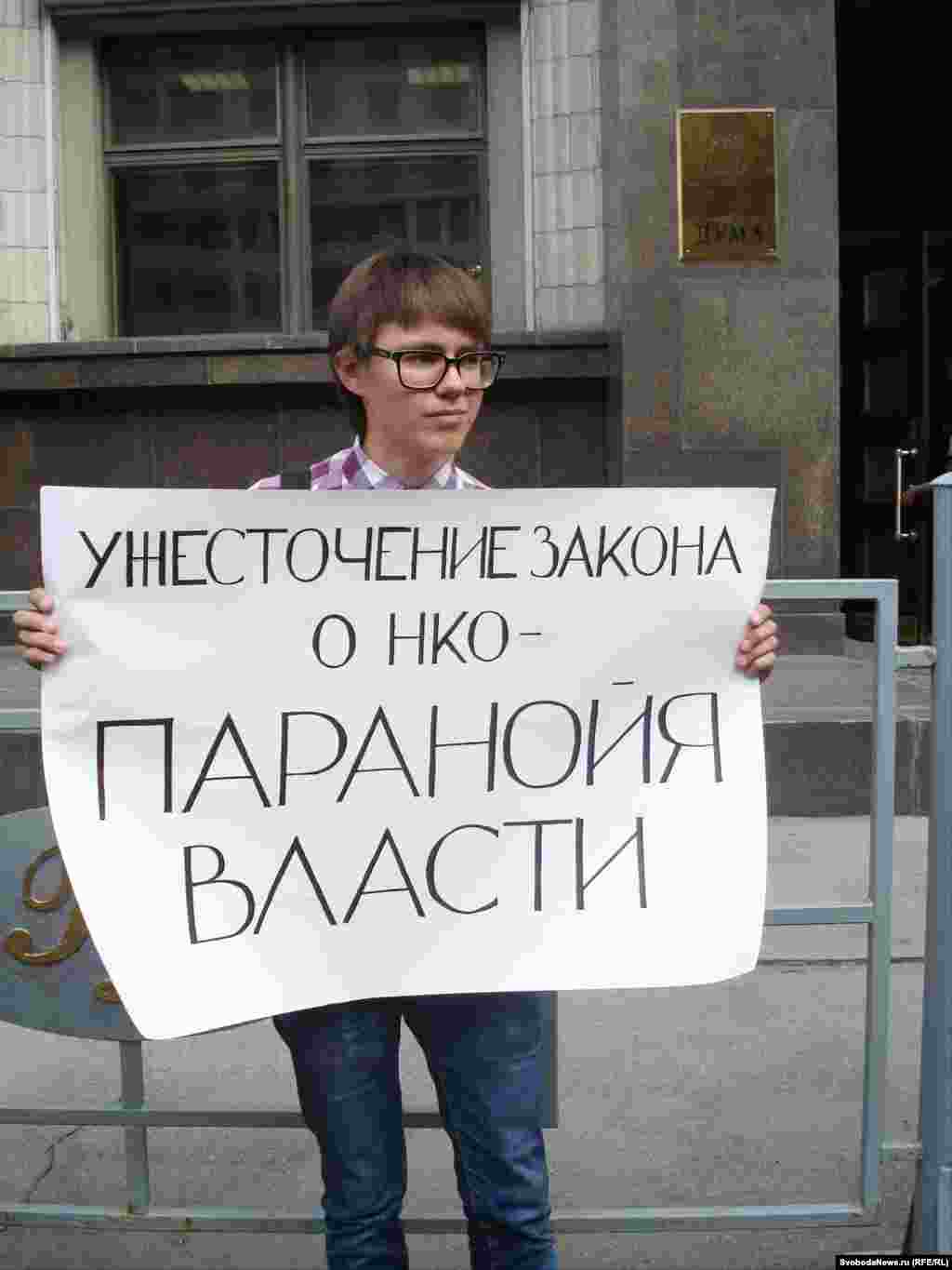 Одиночные пикеты активистов партии "Яблоко" у Госдумы