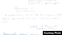 Прошение о помиловании Валентина Данилова от 24 февраля 2012, оставленное без ответа.