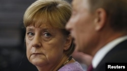 Совместное открытие российско-германской выставки "Бронзовый век. Европа без границ" Владимиром Путиным и Ангелой Меркель было запланировано на вечер пятницы. Потом появились сообщения о том, что этот пункт из программы визита Меркель в Петербург исключен. Как пояснял ее представитель Штеффен Зайберт, канцлер не хотела посещать выставку, не имея возможности изложить позицию Германии по вопросу необходимости взаимного возвращения Россией и Германией принадлежавших им до Второй мировой войны культурных ценностей.
