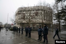 Руководство Совета министров и Верховной Рады Крыма приступило к переговорам с вооруженными лицами, захватившими здания правительства и парламента - сообщает информационное агентство "E-Крым" со ссылкой на председателя Совмина Анатолия Могилева. По его словам, в каждом захваченном здании находятся по 50 лиц славянской внешности, вооруженных автоматическим оружием. Переговоры в парламенте идут по вопросу проведения сессии Верховной Рады.