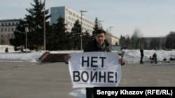 "Не хочу, чтобы наших ребятишек превращали в пушечное мясо, когда украинский народ борется за свою независимость и свободу" — сказала одна из участниц пикета, который прошел 2 марта в Омске.