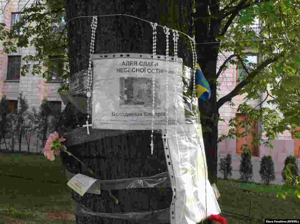 Народные памятники погибшим в Киеве на улице Институтской, где 21-22 февраля прошли жестокие столкновения между Евромайданом и Беркутом, демонстрантов расстреливали из снайперского оружия. Этот фрагмент Майдана останется при грядущей реконструкции