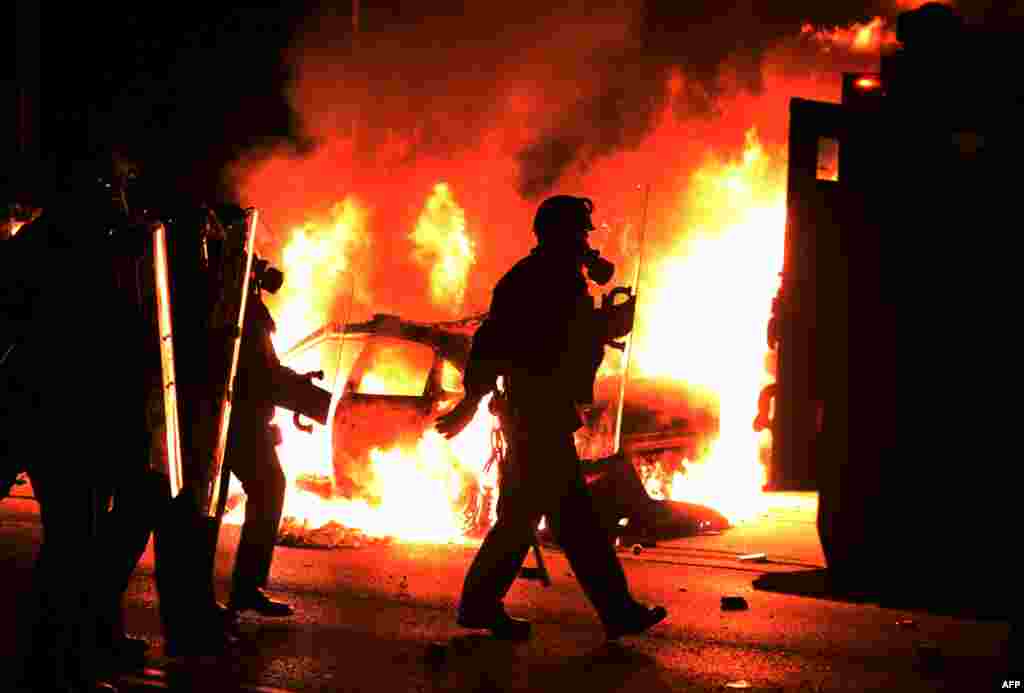 Протестующие переворачивают полицейскую машину в Фергюсоне, 25 ноября