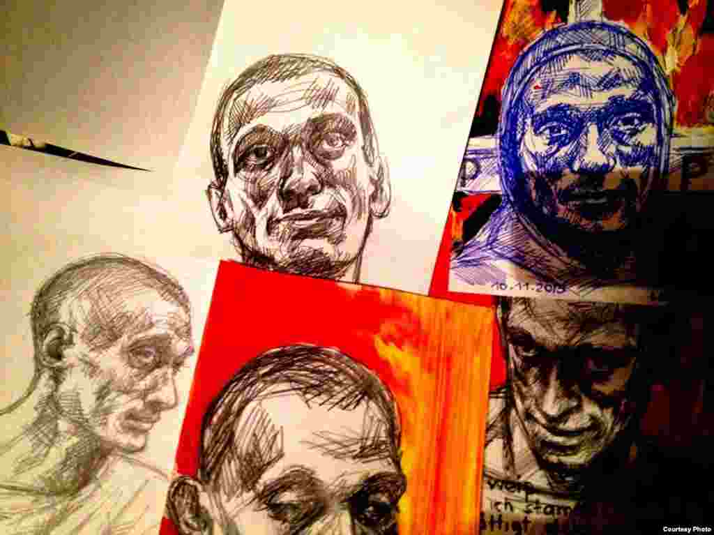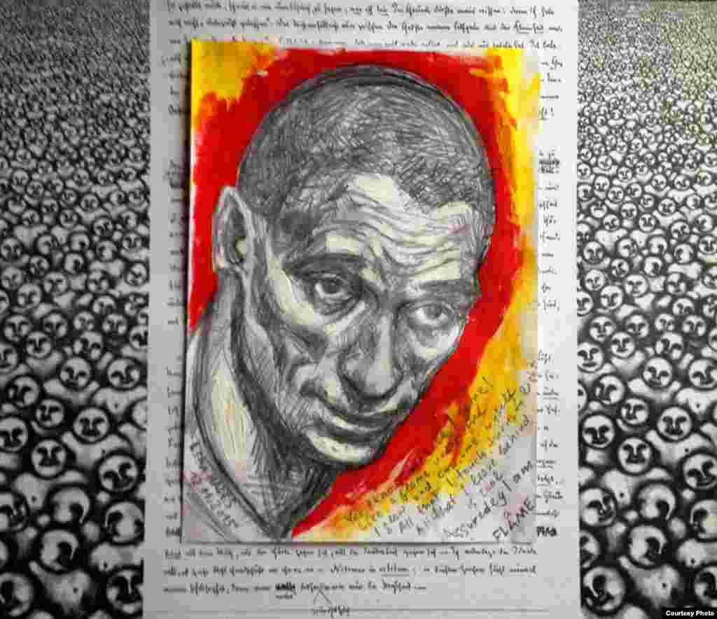Вдохновленная акцией "Горящая дверь Лубянки" московская художница Лена Хейдиз создала цикл портретов Петра Павленского. Элементы рисунков выполнены кровью художницы. Интервью с Леной Хейдиз, рассказ об идеологии ее работы - читайте здесь.