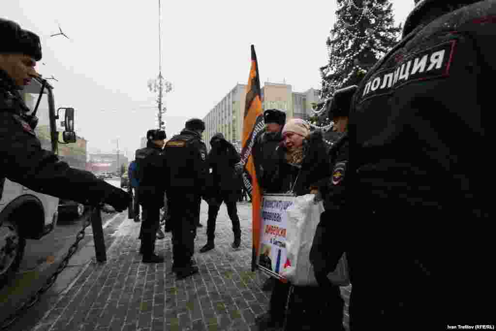 В связи с этим группа гражданских оппозиционных активистов попыталась собраться 12 декабря на Пушкинской площади. Полиция их действия пресекла, более 30 человек были задержаны. Среди них члены партии "Яблоко", включая ее лидера Сергея Митрохина, правозащитник Лев Пономарев и журналист Александр Рыклин, а также один из авторов Конституции России, бывший помощник президента Бориса Ельцина Георгий Сатаров.
