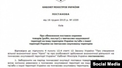Украина с 17 января официально прекращает товарооборот с аннексированным Россией Крымом. Об этом говорится в постановлении Кабинета министров страны от 16 декабря 2015 года, которое вступает в силу в воскресенье.