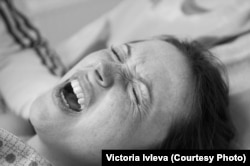– Я снимала в Донецкой и Луганской областях на контролируемых Украиной территориях. Во-первых, я никогда не называю эти территории так, как вы их называете, я называю их "неконтролируемые территории", потому что для меня этих "государств" не существует, для меня это неконтролируемые территории Украины. Я была на контролируемой Украиной части Донецкой и Луганской областей, в нескольких городах, в Краматорске, который теперь столица Донецкой области, в Северодонецке, который столица Луганской, сняла украинских женщин там, это было безо всяких проблем. Проблему представлял Крым, конечно, потому что этот проект без Крыма существовать не имел права, это была бы, наверное, издевка над Украиной – сделать проект "Рождение Украины" без Крыма. Ехать в Крым я не хотела ни при каких обстоятельствах. Мы очень долго думали, что делать, то ли выставить кусок белой фотографической бумаги, то ли раскрасить эту бумагу в цвета украинского флага, но это все эстетически совершенно из проекта выбивалось. Потом мой товарищ, Валера Милосердов, который работает в "Изоляции", сказал: "Вика, нужно просто снять переселенцев, и это будет самый хороший ход". И я нашла в Киеве двух волшебных женщин-переселенок, одна из них родила накануне, и это съемка немножко другая, я пришла к ней, когда ребенку было почти сутки, а вторая была на сносях, беременная, я к ней приходила домой. Но в результате три фотографии на выставке – крымские, на одной написано "Бахчисарай, Крым \ Киев", на других – "Алушта, Крым \Киев", я думаю, это и есть настоящая связь Крыма с Украиной.