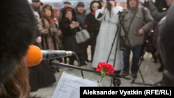 "Маска Скорби" – дань памяти жертвам репрессий, установленная 20 лет назад скульптором Эрнстом Неизвестным, каждый день напоминает о трагическом прошлом региона. В воскресенье около 100 человек пришли почтить память погибших. Минута молчания, короткая лития, прочтение 20 имен погибших, добавленных в мартиролог. Люди, одетые в теплые пуховики и зимние ботинки, ежатся от мороза и пронизывающего ветра.