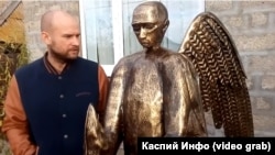 В Астрахани отлили бронзового Путина в образе ангела-медведя с осетром.