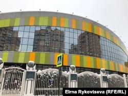 Но этот снимок не дает полного представления о масштабах здания. Уже потом, когда мы вышли на улицу, я попыталась снять его со стороны катка. Но школа настолько большая, что пришлось даже сделать видео, чтобы было понятно, каких она размеров.