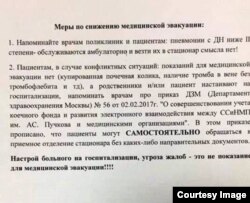 Одна из подстанций согласилась предоставить редакции фото списка таких “мер”. Первый пункт гласит, что если есть все показания к госпитализации, то пациента нужно госпитализировать. Но уже во втором пункте сказано: “На медицинской эвакуации не настаивать”.
