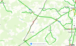 "Яндекс.пробки" с середины марта показывают черным многокилометровый участок Калужского шоссе рядом с Голохвастовом.