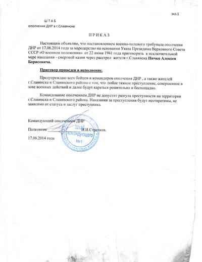 • 1 В качестве юридической базы казней Гиркин ссылается на указ Президиума Верховного Совета СССР от 22 июня 1941 года, вводящий в стране военное положение.