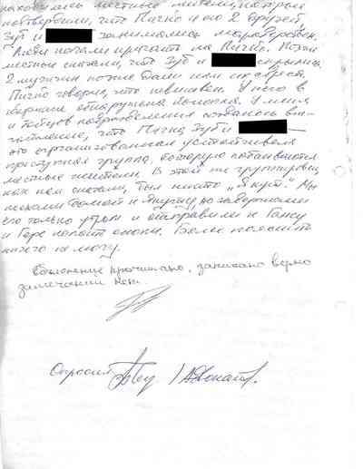 Подпись "Берии" стоит рядом с подписью Здрылюка и видна на обратной стороне последней страницы протокола "трибунала" Пичко, датированной 18 июня 2014 года: согласно надписи, "Берия" "получил" это документ. В выводах проверки украинского МВД указано, что "Берия" получал предписания от "Абвера" на исполнение наказаний.