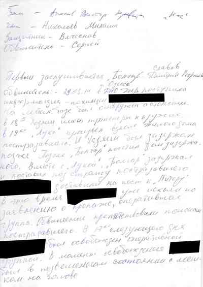 В публикуемых Радио Свобода документах его имя вымарано, поскольку мы не смогли с ним связаться. Его обвиняли в измене и подвергли жесткому допросу. В итоге он был признан невиновным и отпущен.
