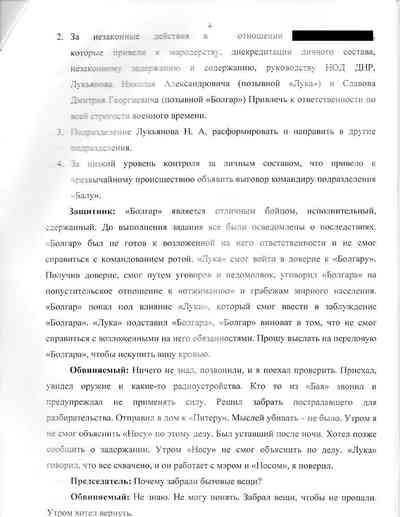 Тремя неделями ранее, 25 мая, двое украинцев, воевавших на стороне сепаратистов, 32-летний Дмитрий Славов и 25-летний Николай Лукьянов, были арестованы своими же товарищами по оружию по обвинению в мародерстве, вооруженном ограблении, похищении человека, оставлении военных позиций и попытке воспрепятствовать расследованию. Их допросили, а потом расстреляли, как сообщают их родственники и знакомые, а также двое жителей Славянска, осведомленные о ходе этих "судов" и расстрелов.