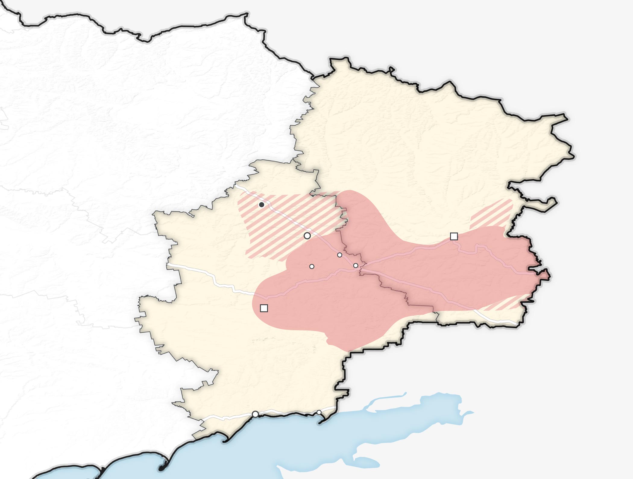 • Территория, контролируемая поддерживаемыми Россией сепаратистами до 5 июля 2014 года.