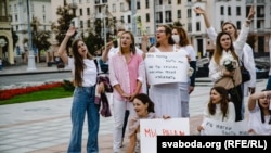 Женщины с цветами в руках, белой одежде и с белыми лентами встали в "цепи солидарности" на нескольких улицах и проспектах белорусской столицы. Водители проезжающих автомобилей сигналят им в знак поддержки.