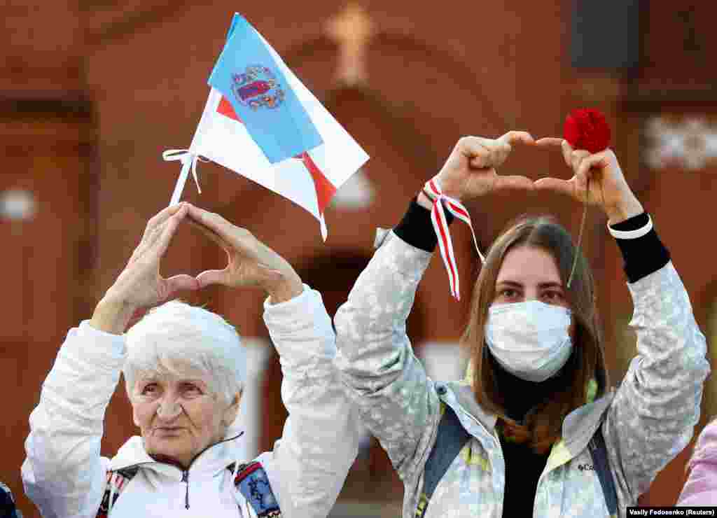 На площади перед Красной церковью люди выстроились "цепочкой солидарности". Фотогалерея Белорусской службы Радио Свобода
