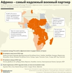 С 2014 года Кремль заключил соглашения о военном сотрудничестве более чем с 20 государствами континента. В большинстве случаев речь идет об обучении и подготовке местных военнослужащих (с 2014 года в России военные вузы окончили более 3,5 тысячи африканских офицеров), поставках вооружений, обслуживании уже имеющейся там боевой техники. Также в африканских странах время от времени открываются новые официальные представительства Минобороны России.