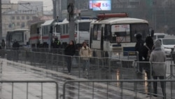 Заграждения на Невском проспекте и Дворцовой площади Санкт-Петербурга.