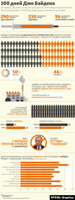Президент Байден миновал условный рубеж – 100 дней у власти. По традиции в этот день американцы взвешивают достижения и неудачи главы государства. Баланс пока положительный, но многие обещания остаются неисполненными, а оппоненты обвиняют 46-го президента в узкопартийной политике.