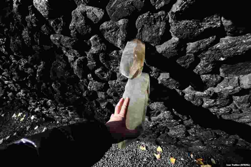 "Кристальная стена плача" достигает в длину 40 метров, а ее высота – 3 метра. Она сделана из антрацита и расположенных на разной высоте кристаллов кварца, привезенных из Бразилии. По замыслу автора, чтобы почувствовать их энергию, необходимо встать перед стеной, прислонившись головой, сердцем и животом к кристаллам, сформулировать вопрос, который волнует, и поразмышлять над ним.