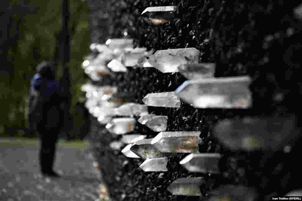 "Кристальная стена плача" достигает в длину 40 метров, а ее высота – 3 метра. Она сделана из антрацита и расположенных на разной высоте кристаллов кварца, привезенных из Бразилии. По замыслу автора, чтобы почувствовать их энергию, необходимо встать перед стеной, прислонившись головой, сердцем и животом к кристаллам, сформулировать вопрос, который волнует, и поразмышлять над ним.