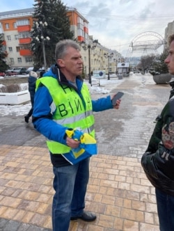 В Белгороде сотрудники полиции задержали 56-летнего Владимира Билевича, который прогуливался по городу в светоотражающем жилете с надписями "Нет войне" на русском и украинском языках.