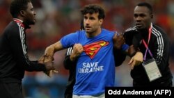 Матч между Португалией и Уругваем на чемпионате мира в Катаре 28 ноября прервал выбежавший на поле болельщик. В руках у него был радужный флаг – символ поддержки ЛГБТ-сообщества. На футболке спереди была надпись "Спасите Украину!", а на спине – "Уважайте иранских женщин". Активист был задержан охраной.