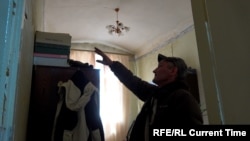 – Тут все течет. Здесь написано "Не включать свет", потому что коротнет. Мы куда только ни обращались, всем наплевать. Моей жены сын ездил в Москву. Власти ничего не хотят делать, дают бэушное жилье, дают комнаты. Зачем? У нас тут двухкомнатная квартира. Я тут еще бы жил сто лет. Дом грабят постоянно, железо обрывают. Они уже пытаются весь дом развалить.