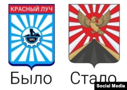 Россия продолжает эксплуатировать миф о Донбассе как о шахтерском крае, при этом в одном из пабликов обратили внимание на новый герб города Хрустальный (бывший Красный Луч), который "утвердили" оккупационные власти. На новом гербе, в отличие от старого, нет шахты, потому что она была закрыта.