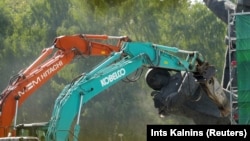 В Риге во вторник начался демонтаж постамента памятника советским воинам в парке Победы, в районе Пардаугаве.