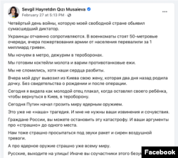 "Граждане России, вы можете остановить эту катастрофу. И ваши аргументы о "страшно" в одно место, – пишет журналистка Севгиль Мусаева. – Выходите на улицы... Иначе вы – соучастники этого безумия".