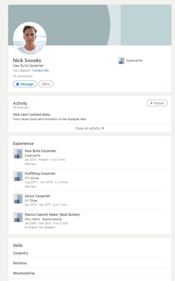 После публкиации этого материала Снукс удалил свой пост в фейсбуке, в котором он с любовью вспоминает о работе на яхте "Дилбар", а также удалил свою страничку в LinkedIn (скриншот страницы с CV – по этой ссылке). Сниппет этой странички с упоминанием компании Imperial Yachts также сохранился в кэше Google).