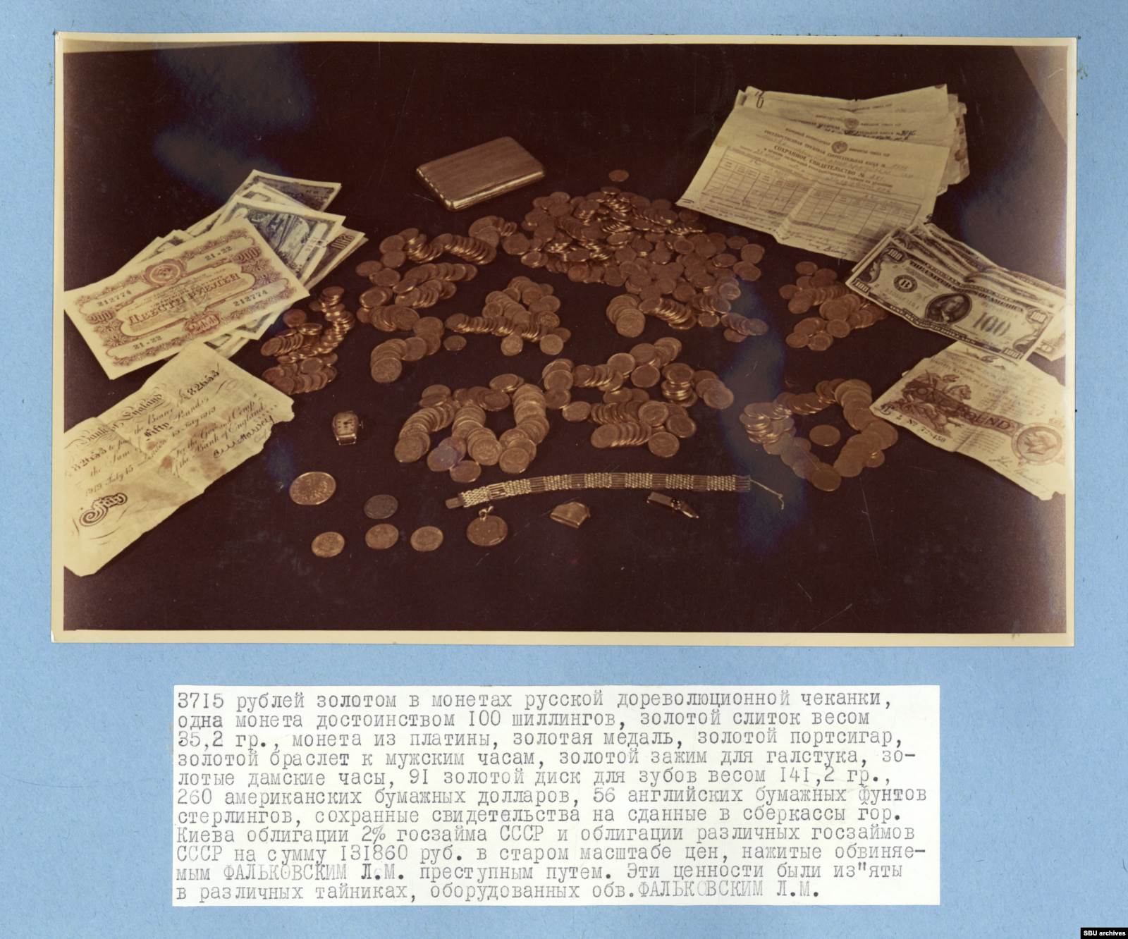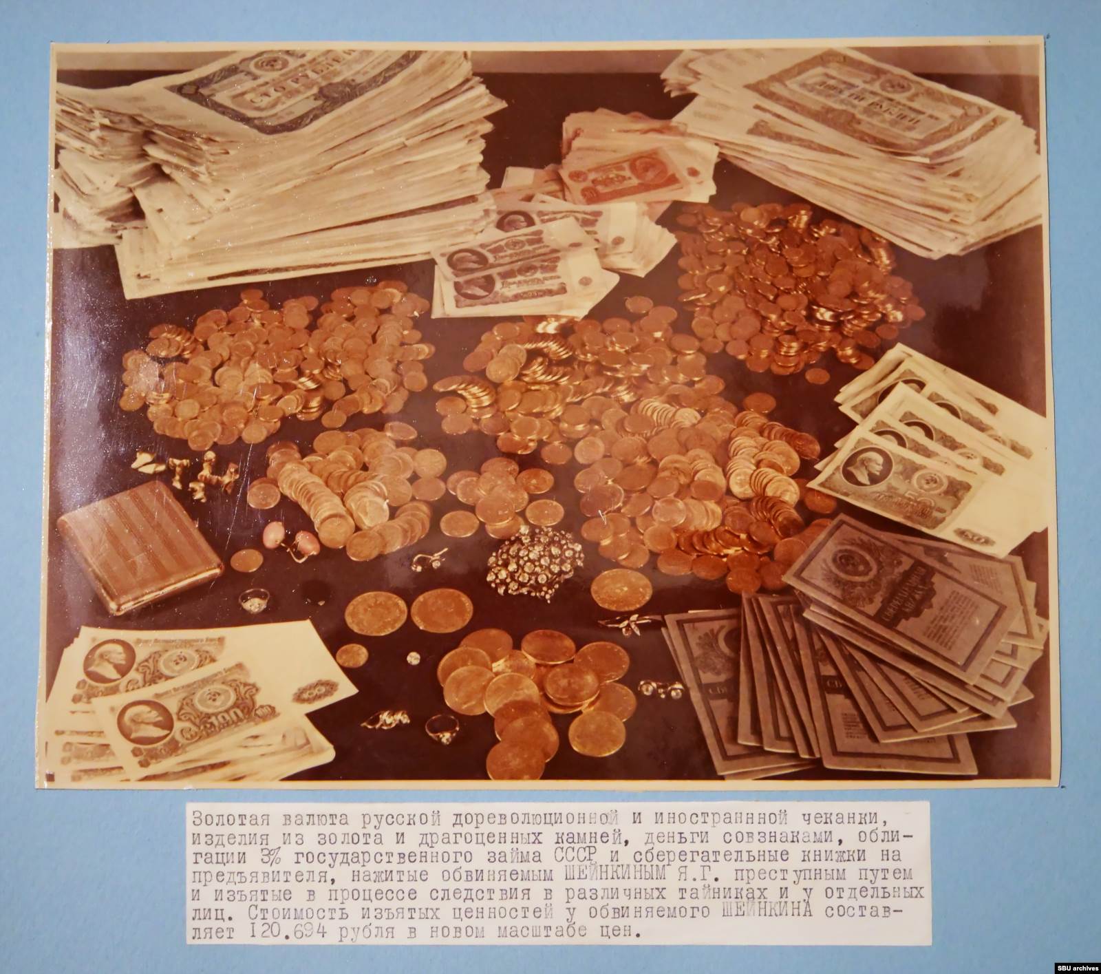 Настоящее Время рассказывает историю киевлянина Якова Шейнкина, который работал экспедитором, нелегально торговал фруктами и хранил сбережения в золоте – накопив в общей сложности 12 килограммов монет, а также драгоценности и меха. Рассекреченное дело Шейнкина хранится в архиве Службы безопасности Украины.